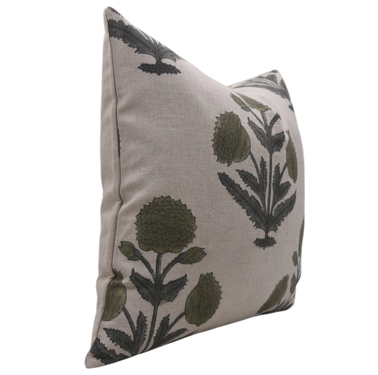 Bohemian Block Printed Pure Linen Pillow Cover - Badshah 22" x22"