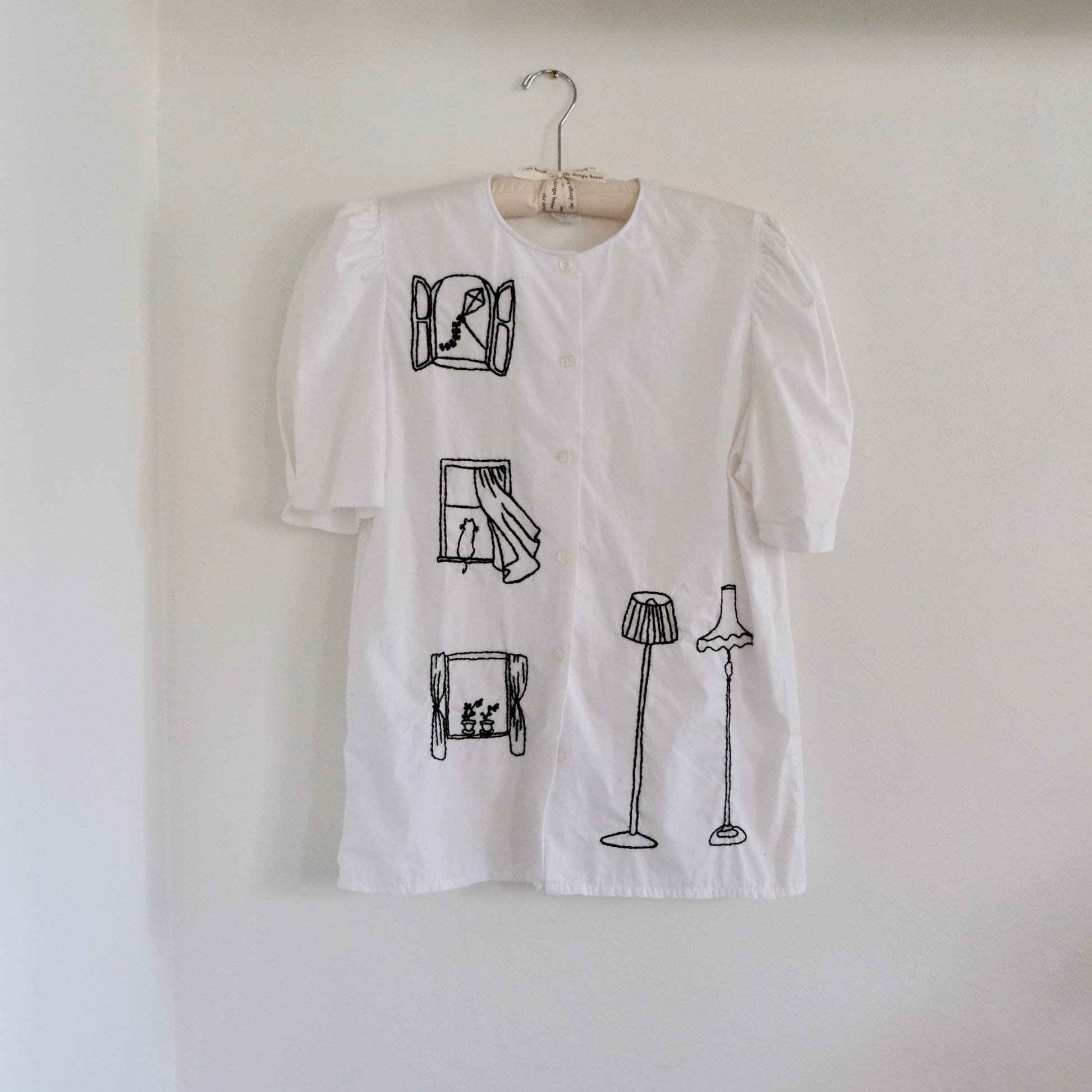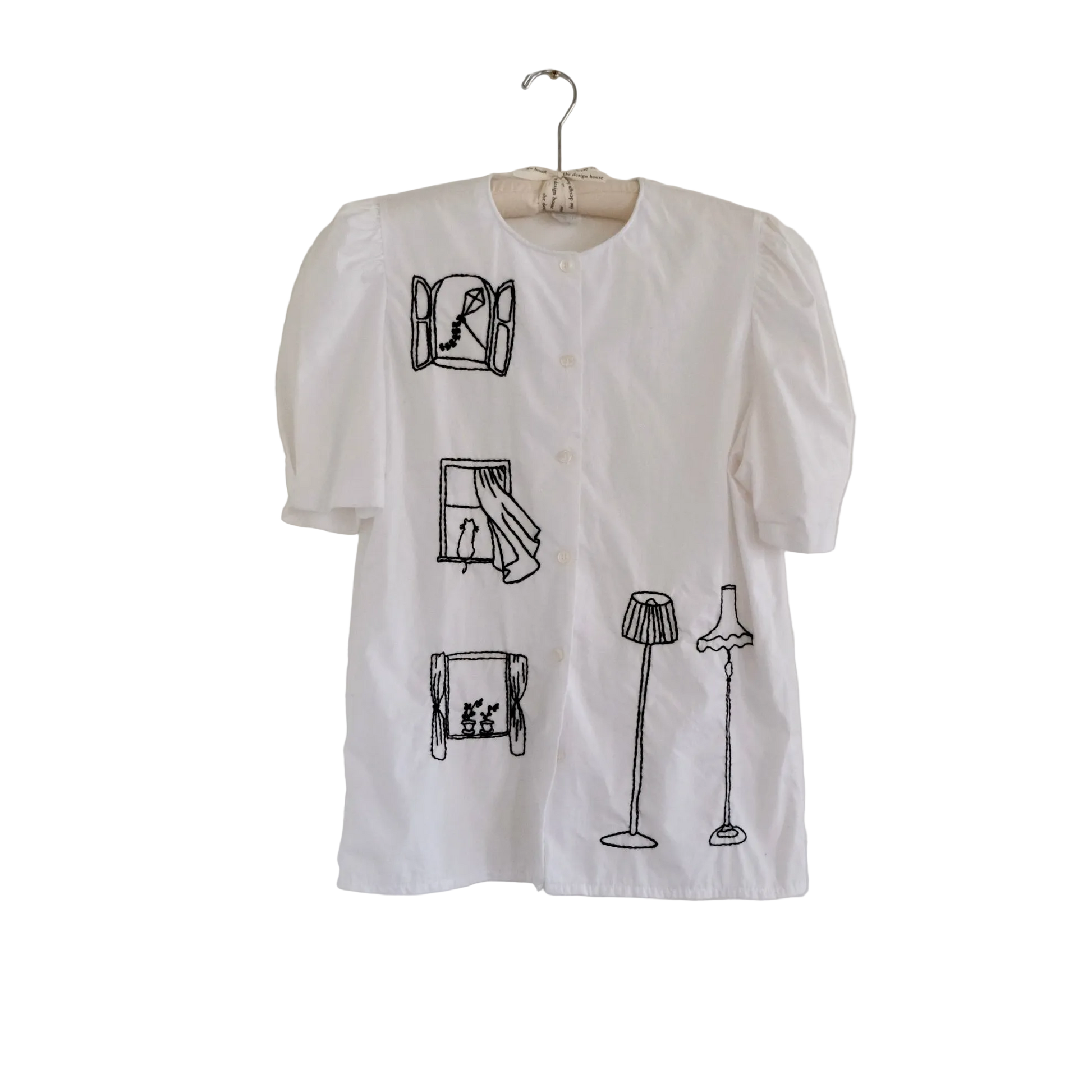 This vintage button-up shirt seamlessly translates the artisanal aesthetic of interior design into wearable fashion. Featuring intricate hand embroidery that echoes the curated elegance of The Design House, each piece carries the character and craftsmanship of a timeless find. Cut in a medium with voluminous poofy sleeves, it offers both comfort and distinctive style. Perfect for those who appreciate the intersection of art, heritage, and refined personal expression.
