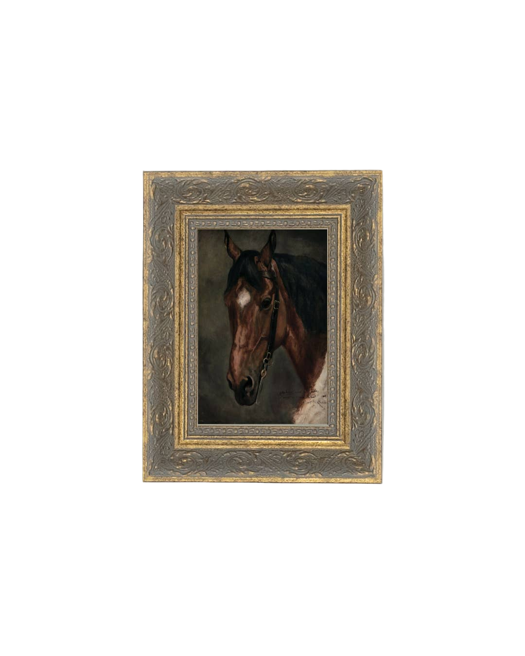 Horse Portrait framed antique art is printed on quality canvas, giving it a lasting finish, then placed into our handcrafted Patina Gold frame. This is an authentic reproduction of the original artwork. Features: Artwork printed on quality, canvas fabric Includes paper backing and hanging hardware Does not include glass