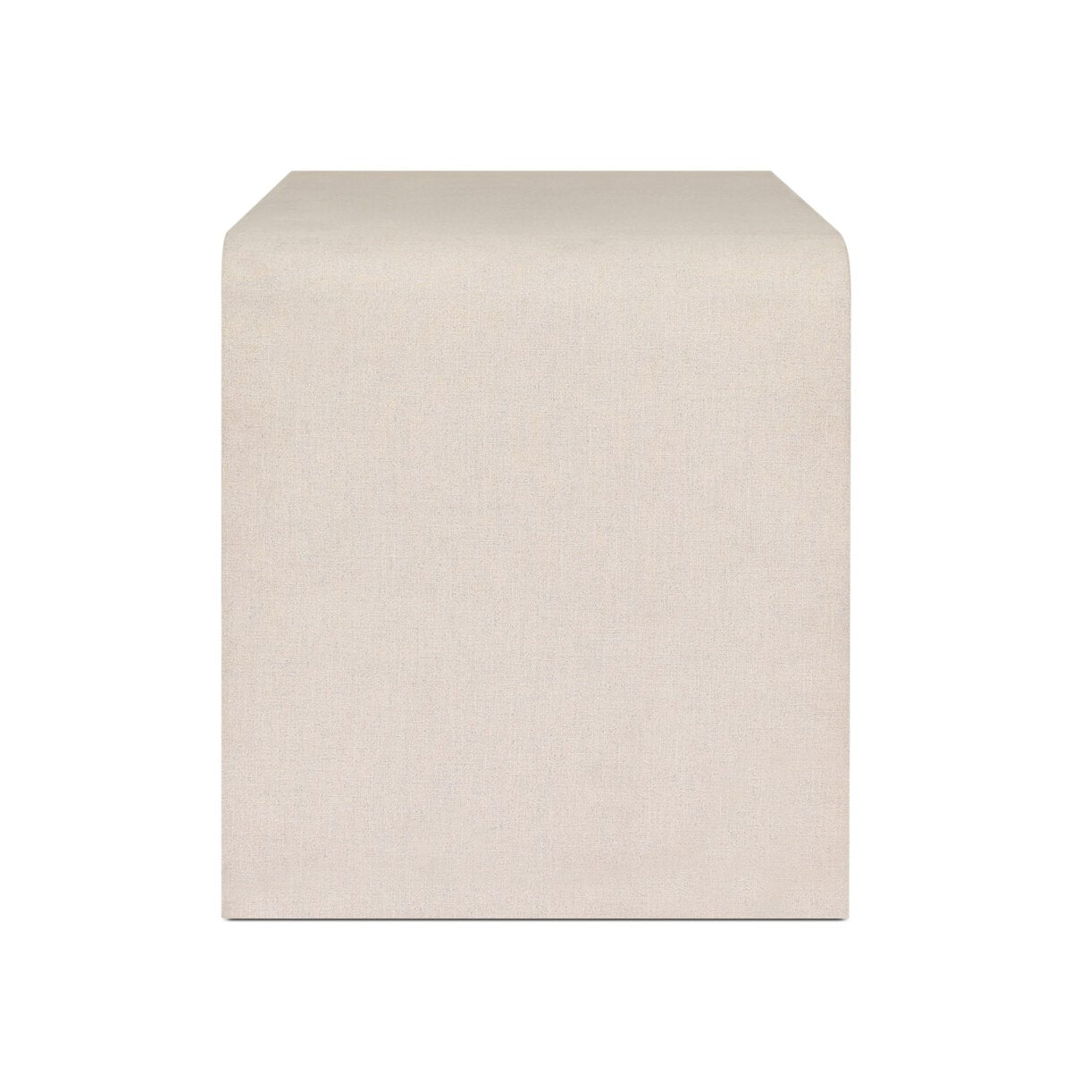 A thick layer of beige painted linen cascades this desk's soft waterfall shape in an eye-catching combination of texture. Crafted atop a mahogany and oak veneer base with rounded corners, this hardworking piece elevates the home-office workspace.