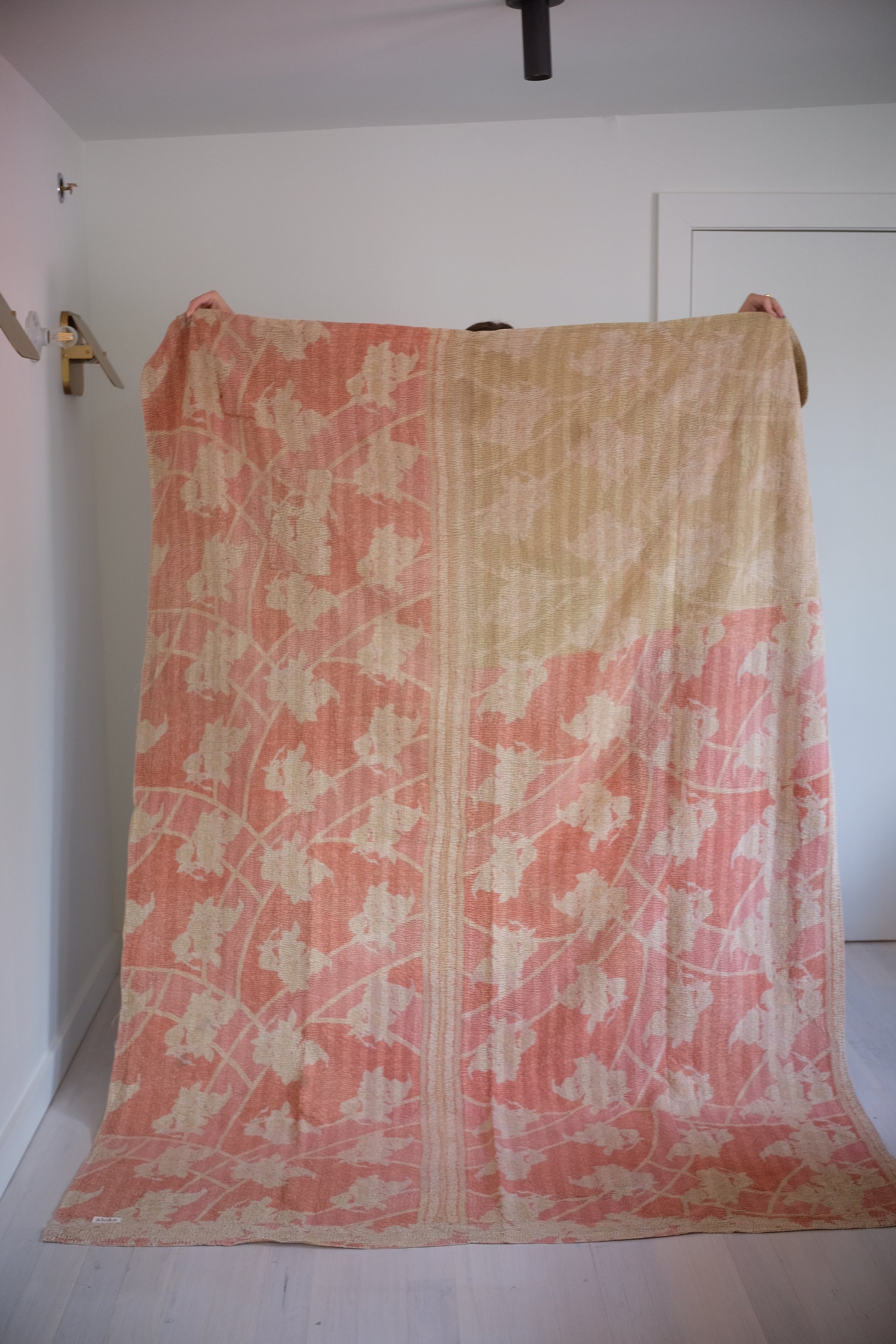 If you love our vintage, hand-stitched quilts, but want a more versatile throw that can also be used as a tablecloth, wrap, or accent blanket, then look no further! The Coverlet Collection is lighter weight and distinctly expressive, one side to the other. And of course, these hand-stitched vintage pieces are in great condition and have the signature softness you've come to expect from aloka. Condition: These are high-quality vintage pieces. We embrace the charm of the little imperfections and the texture created over time and take photos in natural light and with limited editing to reflect its condition. Fabric: Repurposed textile (mostly cotton)