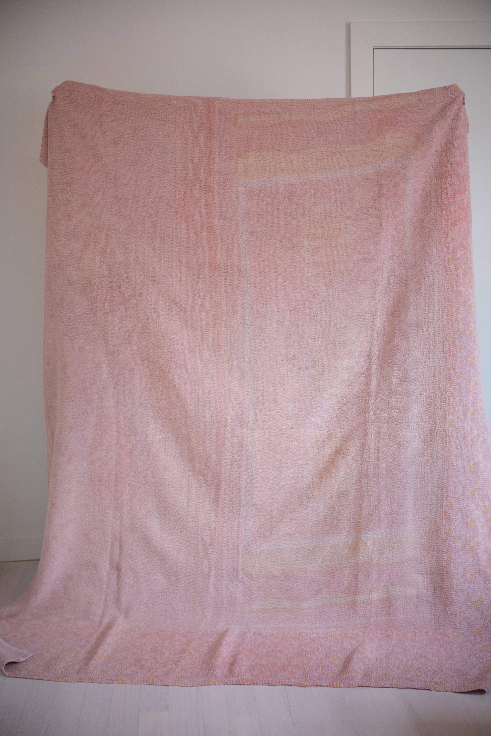 One of a Kind Vintage Coverlet -Pink with Yellow Details