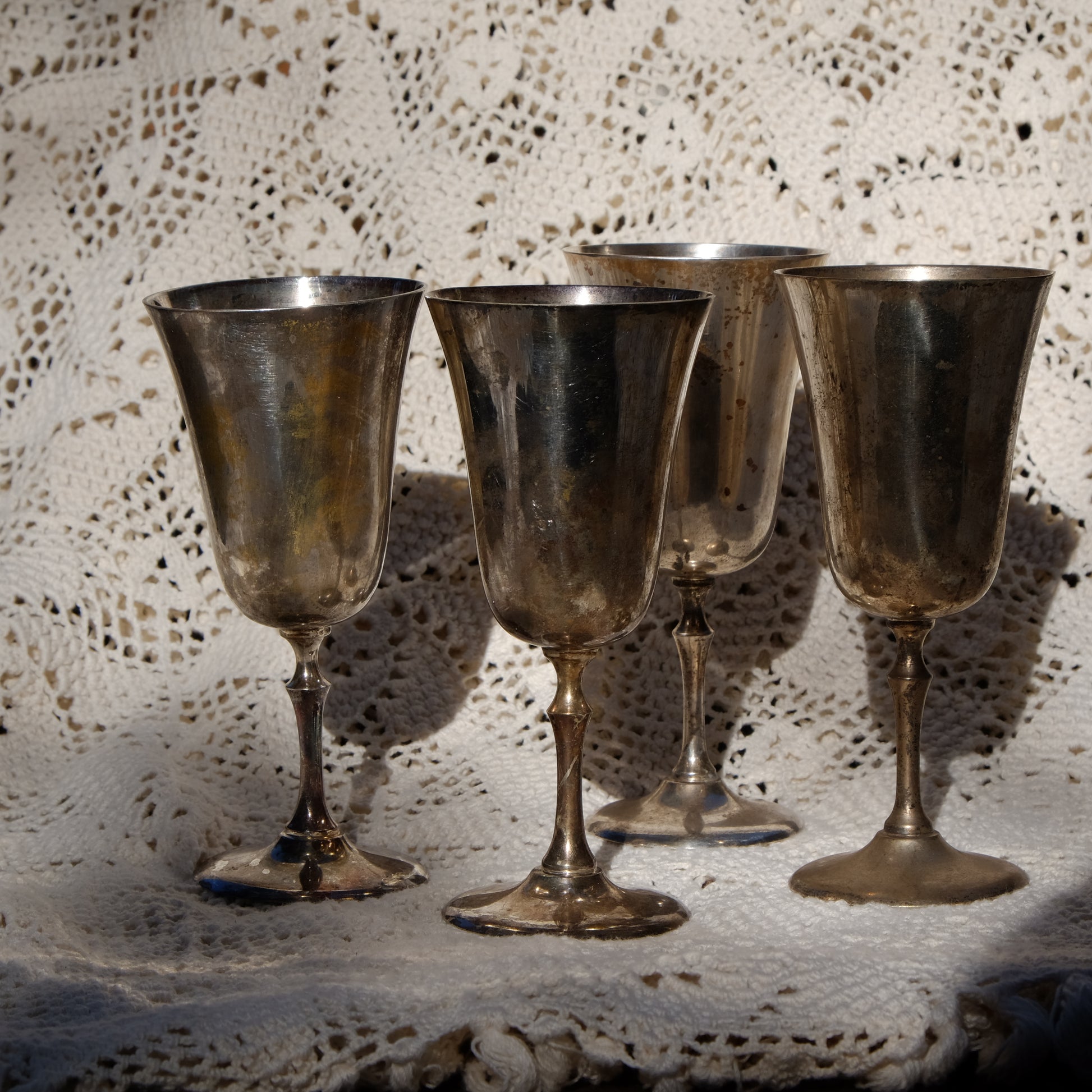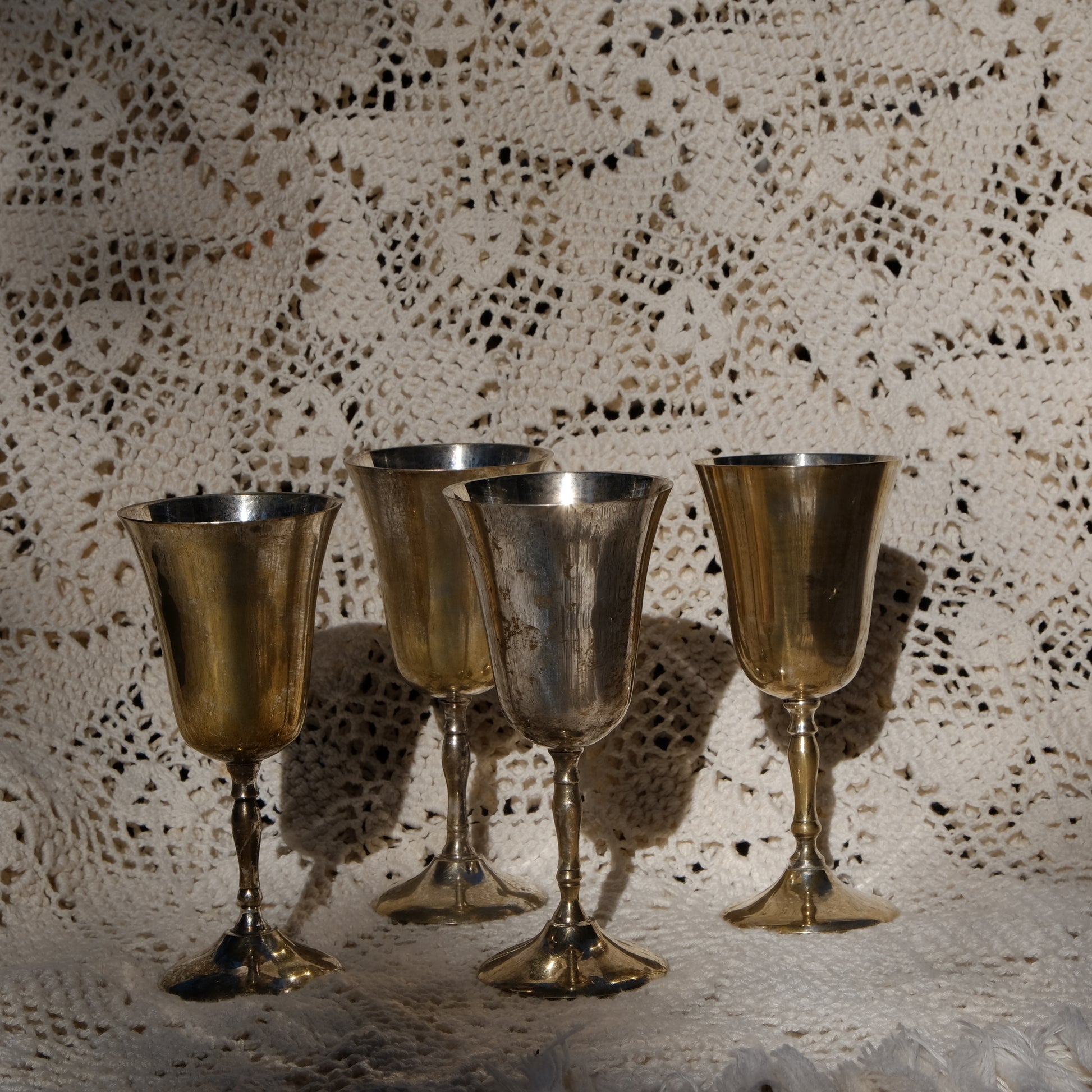 Bring a sense of history to your next gathering. Standing 7 inches tall, these elegant silver-plated goblets feature a classic tapered bowl and a delicately turned stem. Their unique aged patina adds a layer of vintage character that modern barware simply can’t replicate. Perfect for a moody candlelit dinner or as a standout addition to a curated bar cart.