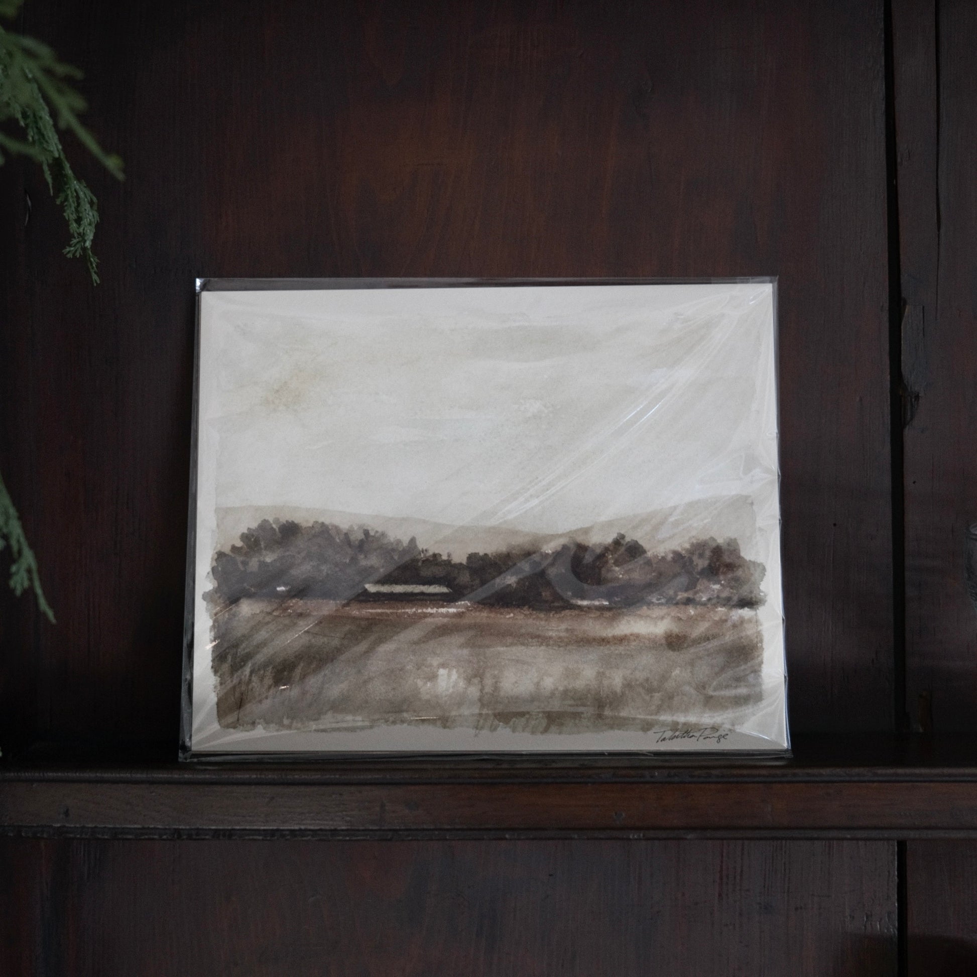 Tabitha Paige's illustrated watercolor features a detailed landscape painting with moody sepia wash. Printed with premium archival inks on museum quality, textured paper giving the print the look of an original piece. Each print is hand signed and delicately wrapped.