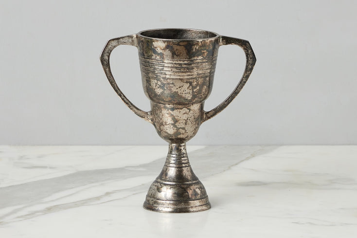 The Vintage Trophy Cup is a sculptural accent inspired by the elegance of old-world race and award trophies. Crafted from metal with classic silhouette detailing, this decorative piece captures the spirit of traditional trophy cups while offering a fresh, curated touch for modern interiors.